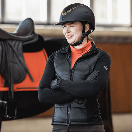 Ridjacka Prag II från HKM är designad för ryttare som vill kombinera stil, komfort och funktion. Med flexibel passform, modern quilting och andasfunktion får du en jacka som ger både rörelsefrihet och värme i stallet och på ridturen.