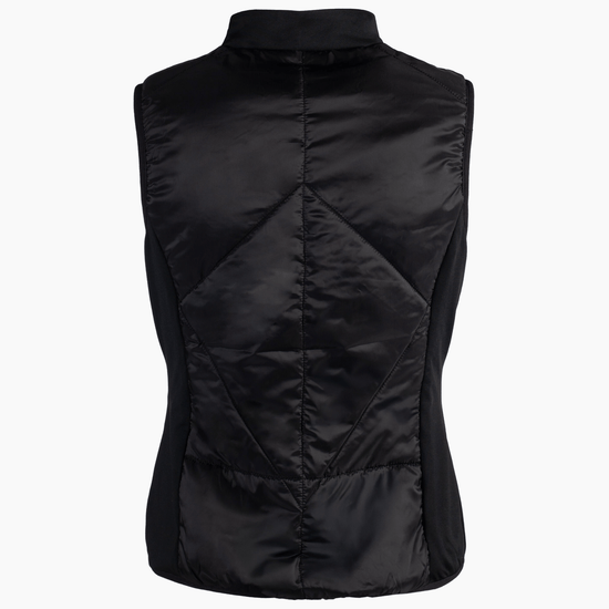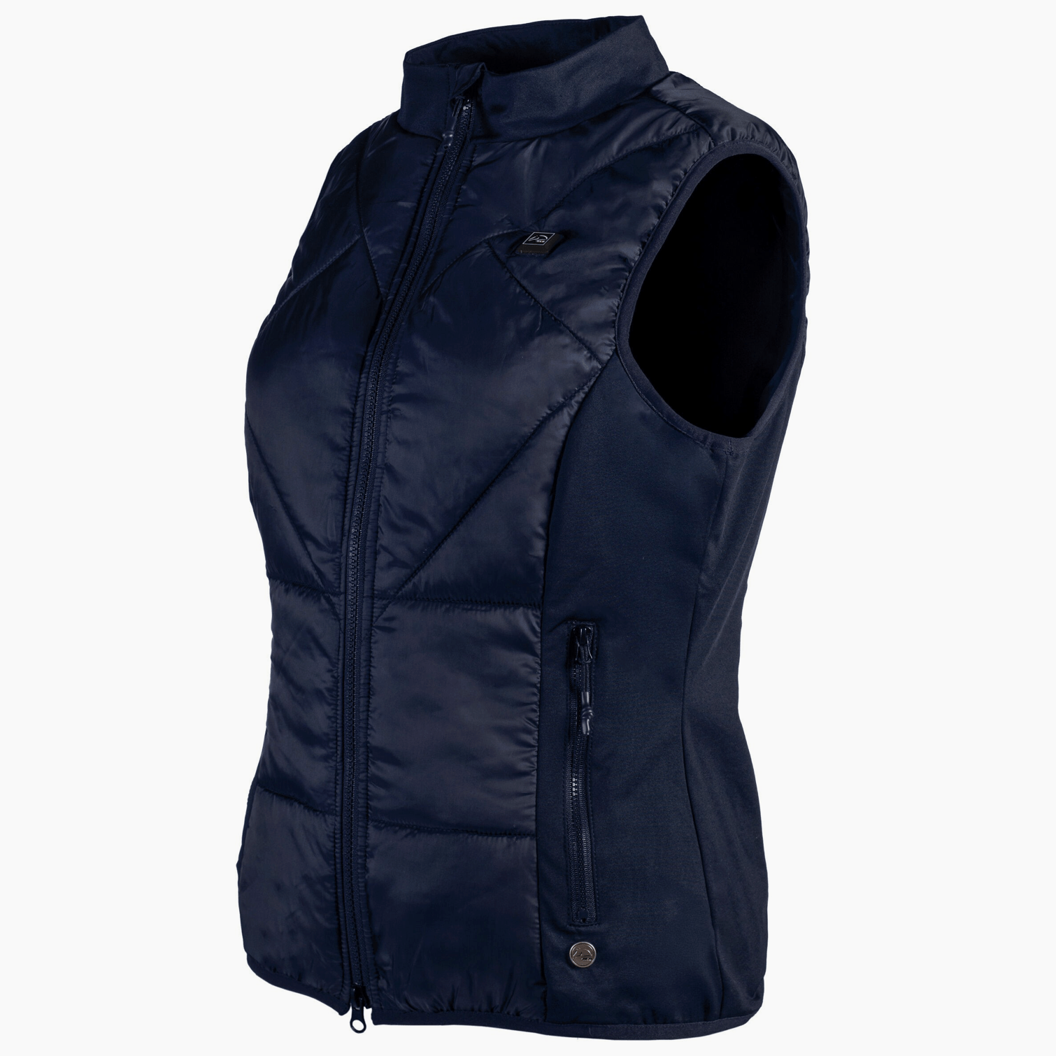 Denna uppvärmda ridväst är skapad med både funktion och form i åtanke. En 2-vägsdragkedja gör det enkelt att anpassa västen när du sitter i sadeln, medan det höga kraget skyddar mot vind. De två ytterfickorna med dragkedja håller händerna varma eller ger plats för mobil och tillbehör. Den moderna quiltningen och den smidiga siluetten gör att västen fungerar lika bra i sadeln som till vardags i stallet.